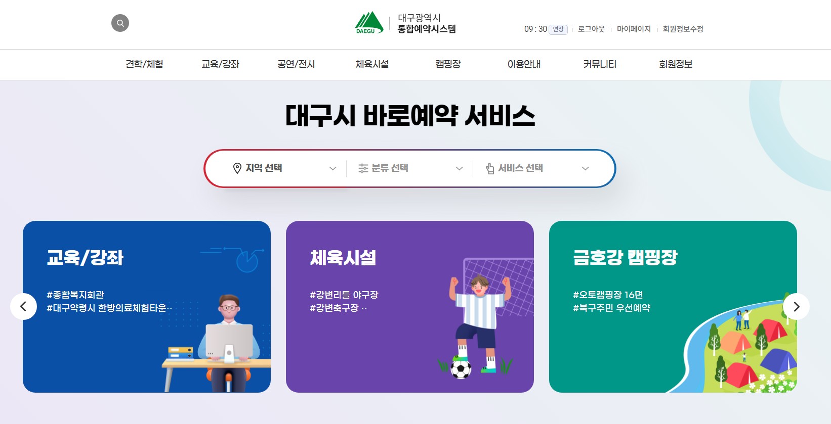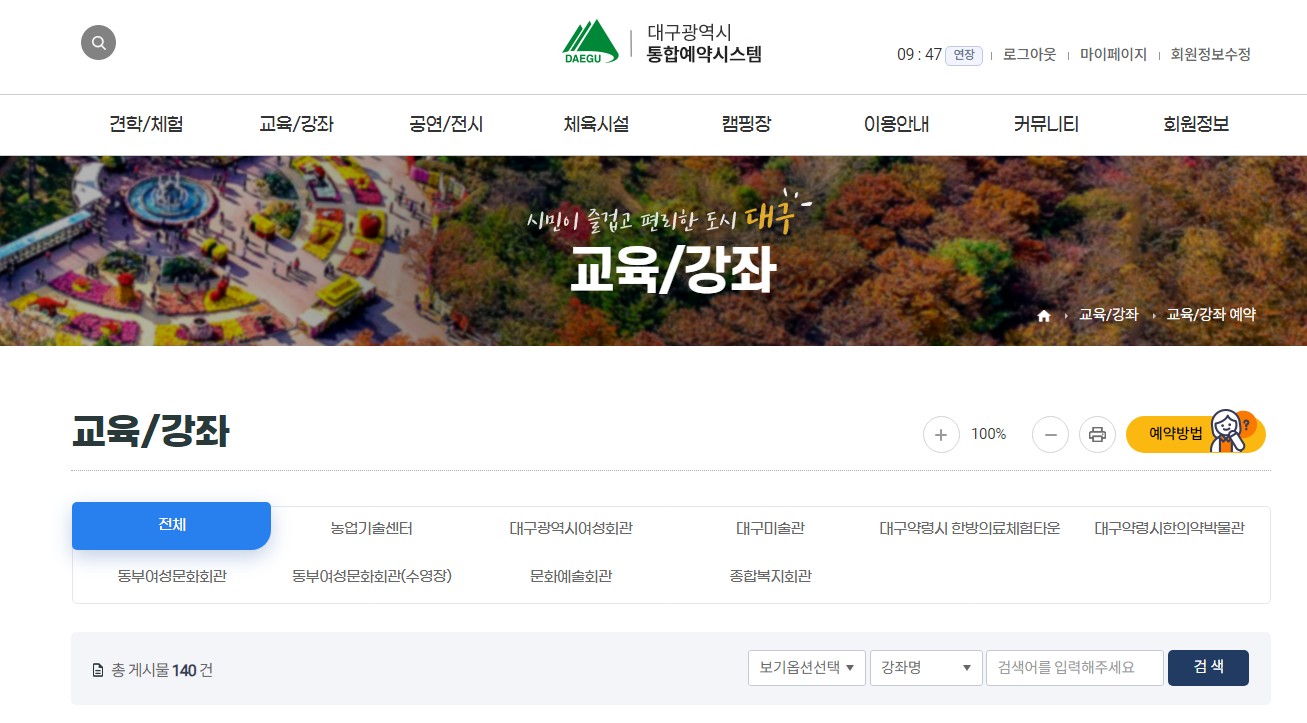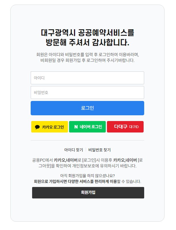 대구광역시 통합예약 시스템에 접속해 줍니다.