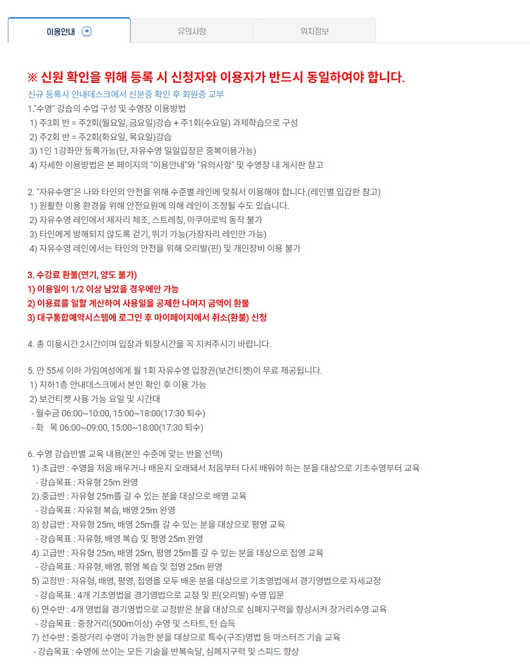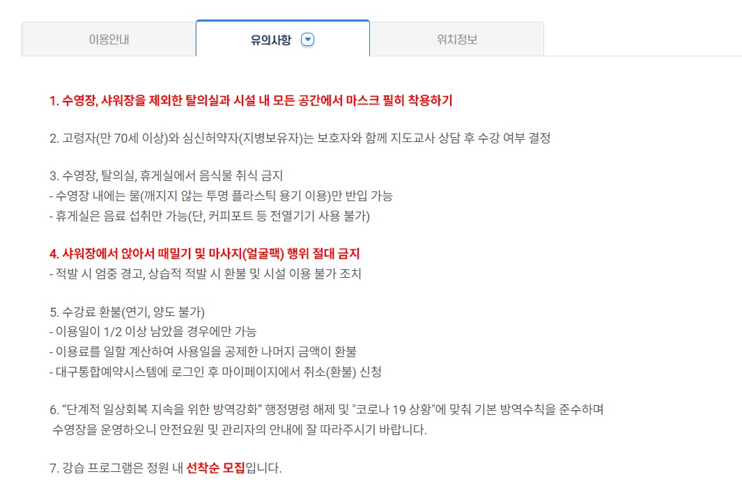 3. 수영장 사용시 유의사항