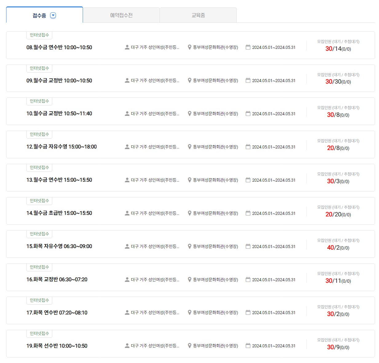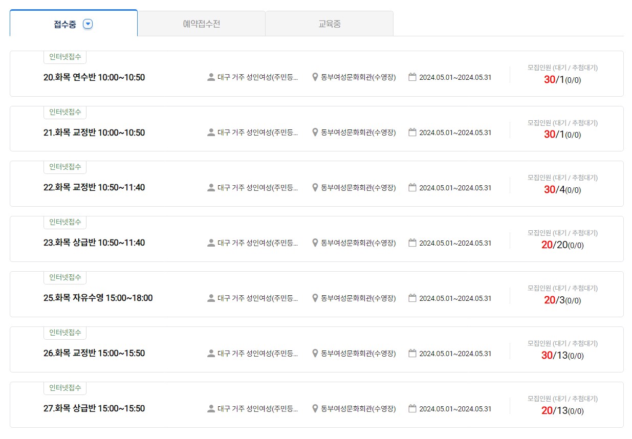 1. 동부여성문화회관 수영장강습 예약하기