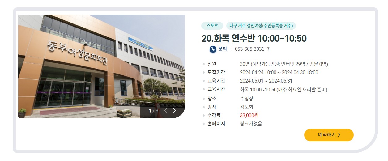 대구에 거주 하시는 여성분들이라면 동부여성문화회관에 수영 하러 많이들 가시는 데요.