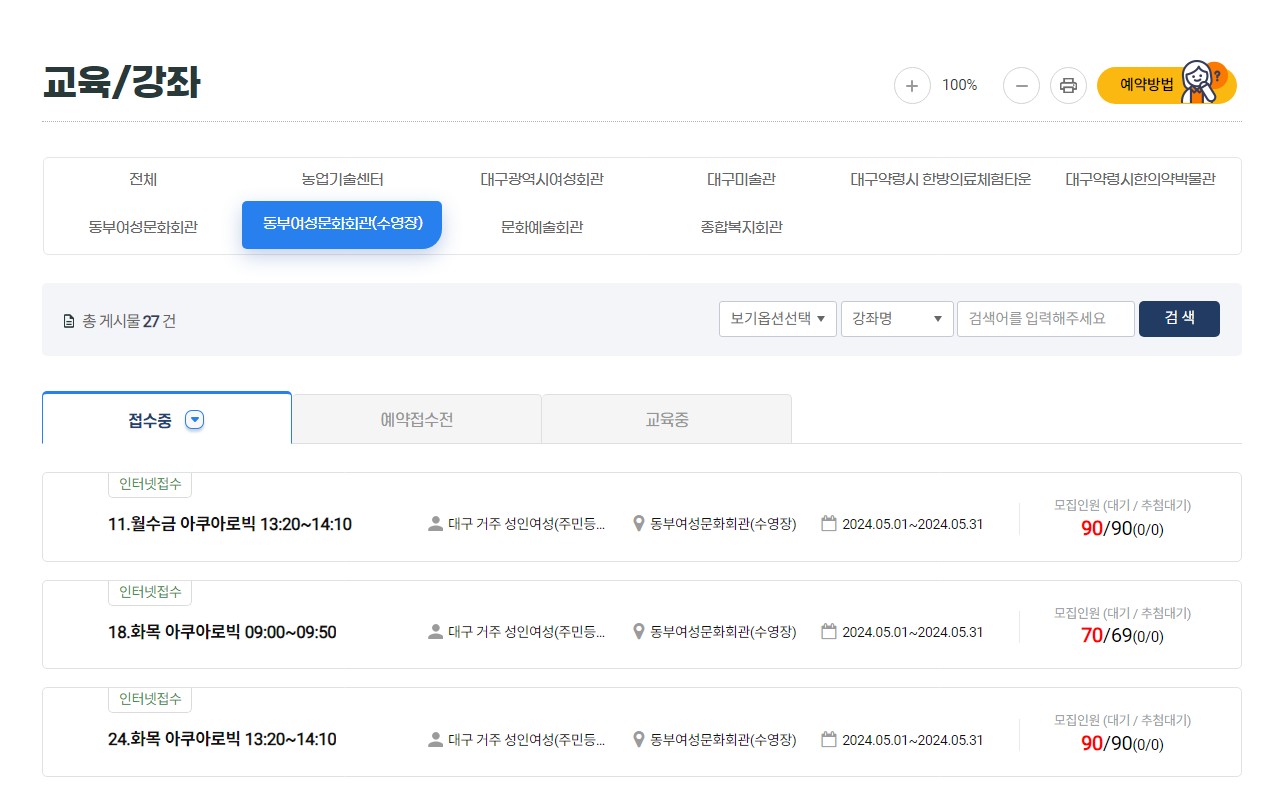 오늘은 동부여성문화회관 수영장 등록방법, 아쿠아로빅 등록방법에 대해 알려드리겠습니다.