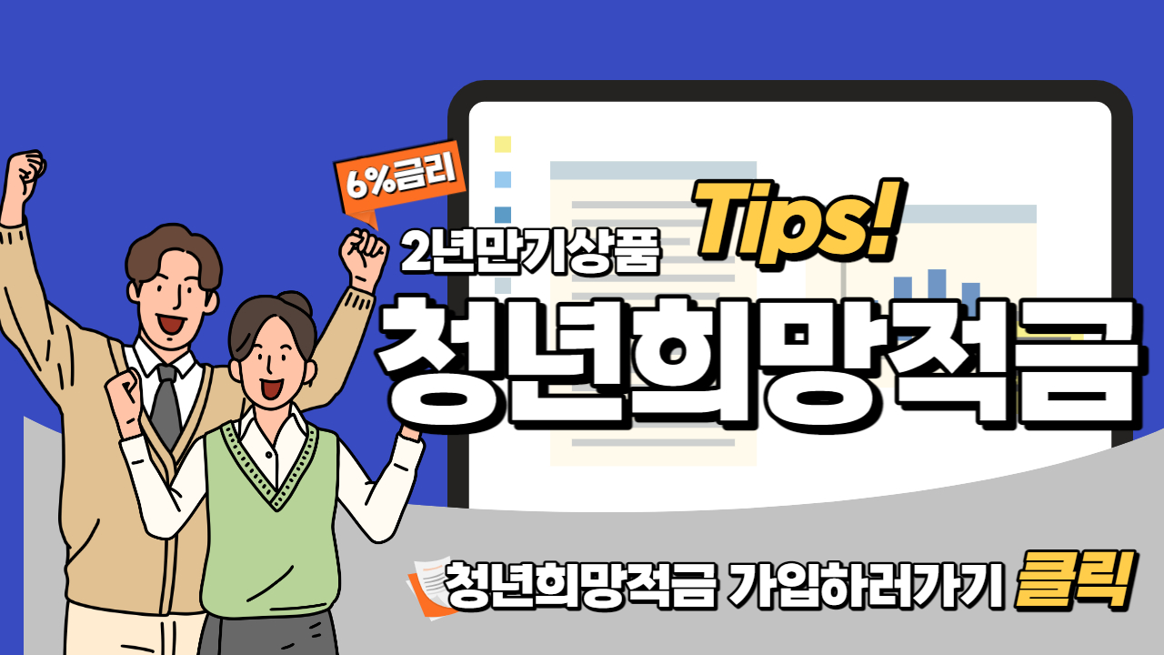 2022년 2월에 출시된 청년희망적금은 청년의 안정적인 자산 관리를 위해 시중은행 11개 지점에서 출시된 상품으로 저축장려금과 이자소득 비과세지원으로 청년들에 목돈마련을 장려하는 사업입니다.