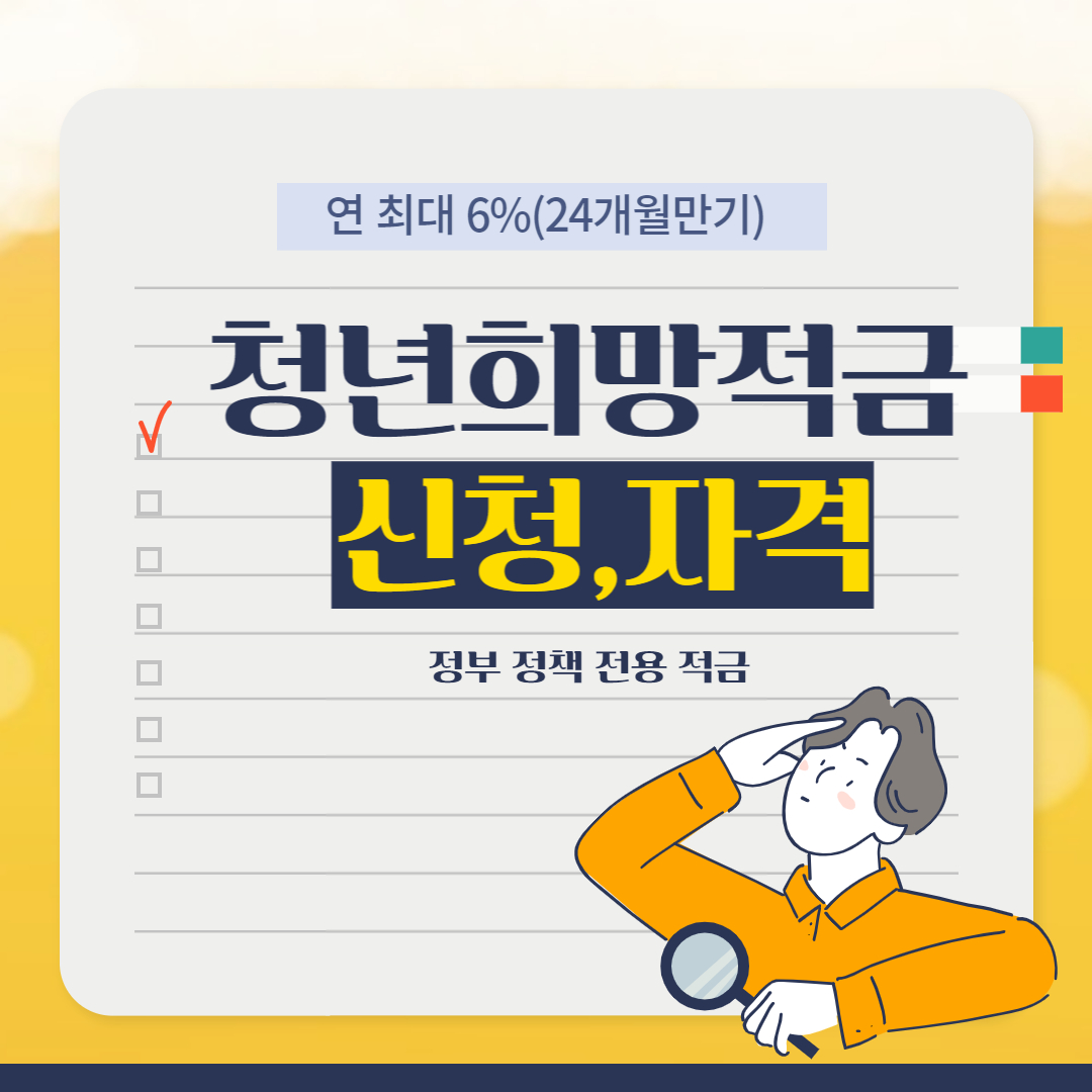쉽게 말하여서 청년희망적금은 만19~34세의 청년이면 가입할수 있으며 총급여 소득이 3.600만원 종합소득이 2.600만원이면 가입이 가능합니다.매월 최대 50만원씩 납입가능하며 만기시까지 납입하면 최대6%의 이자를 받을수 있습니다.