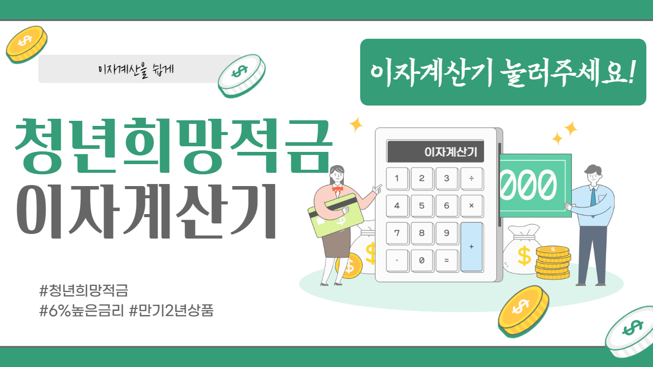 최대 50만원씩 저축이 가능하고 그렇게 저축했을때 최대 2년동안  36만원의 이자가 지원된다고 하니 이보다 좋은 상품이 있을까요? 청년희망적금에 대한 해택과 여러가지 세부사항에 대해 알아보겠습니다.